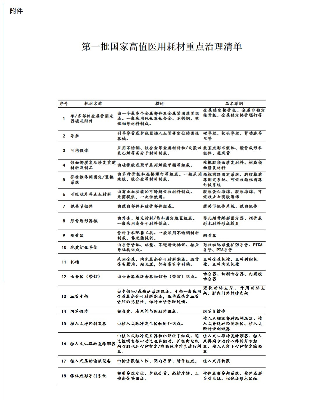 附件:第一批国家高值医用耗材重点治理清单